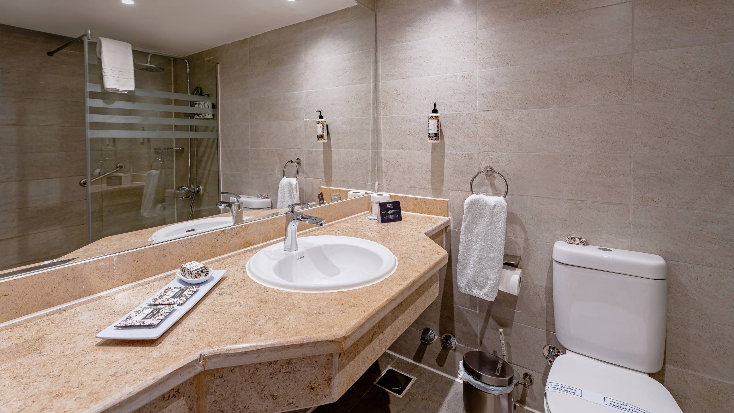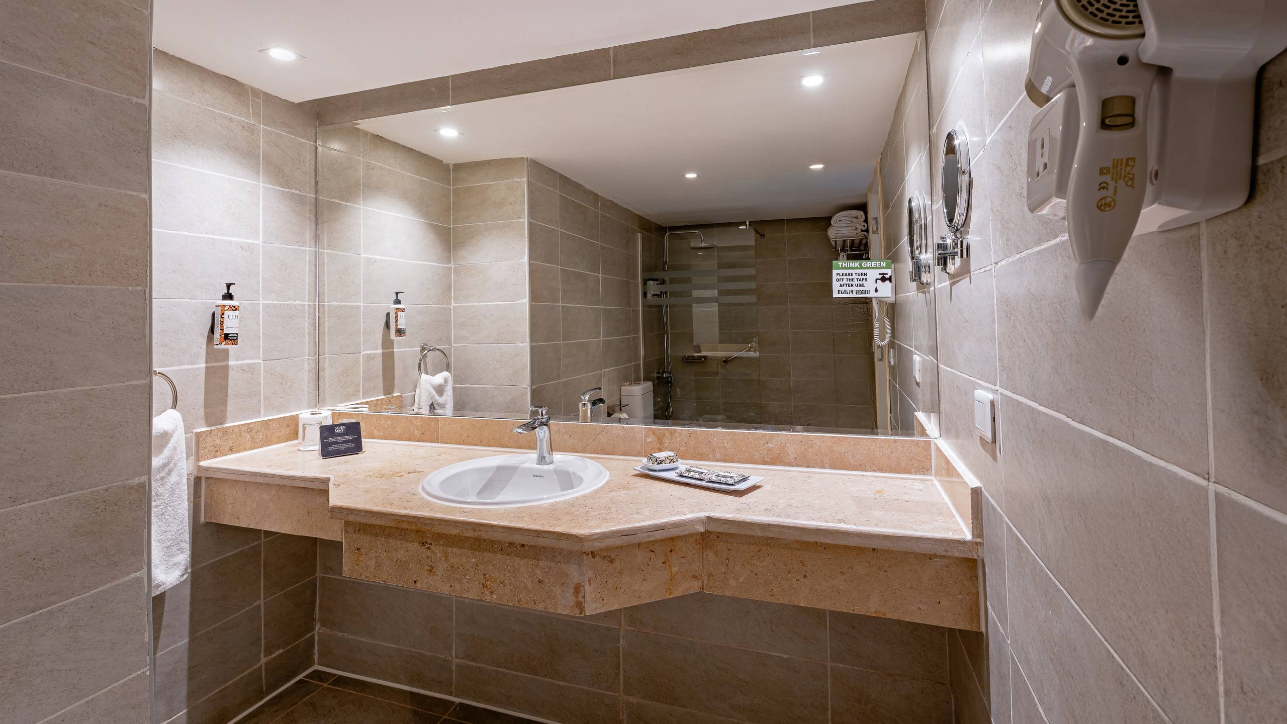 Alle Zimmer sind ausgestattet mit Klimaanlage, LED-Fernseher, Safe, Telefon, Minibar und einem eigenen Bad mit Dusche und Haartrockner.
