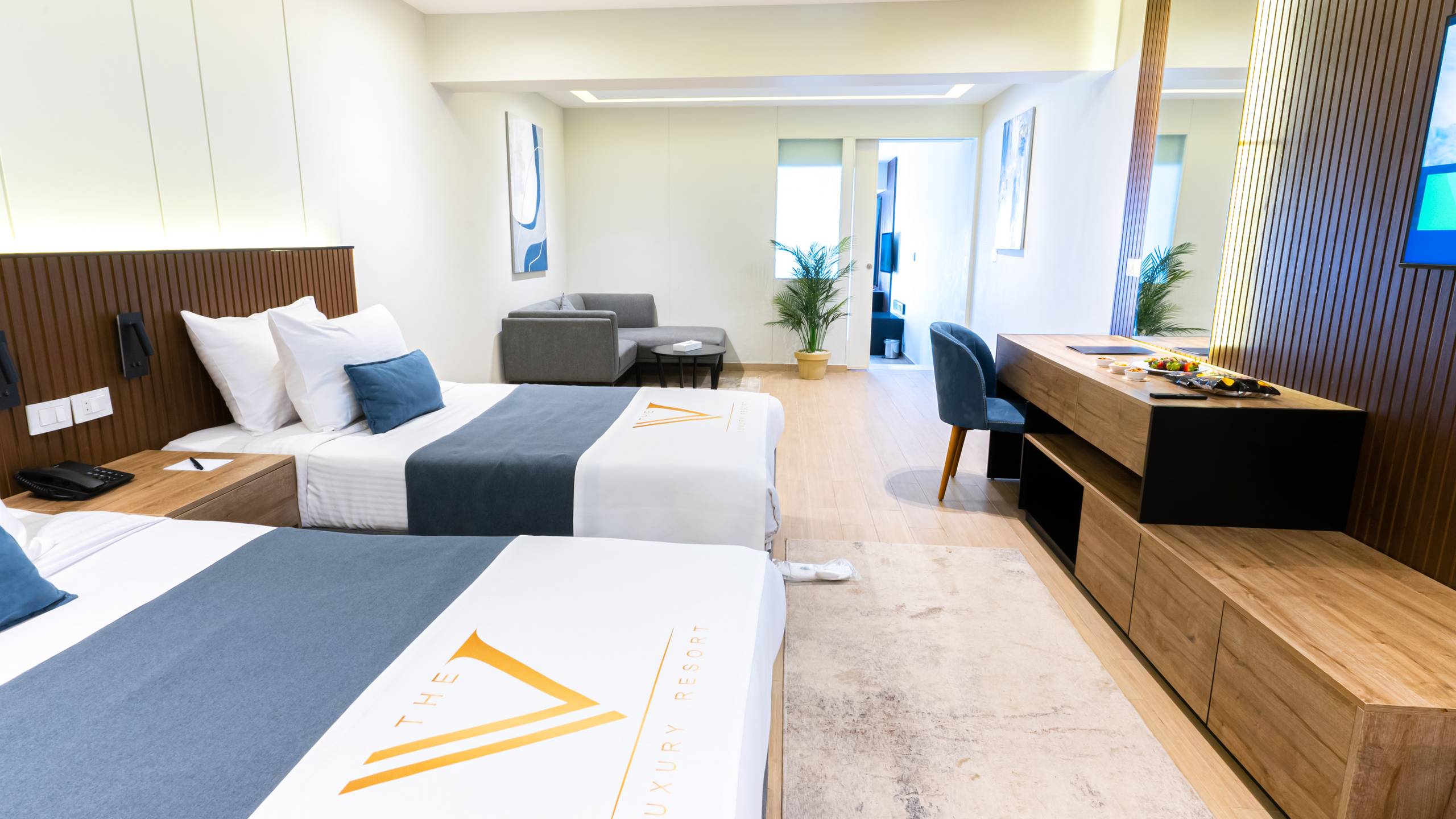 Bei Pauschalreisen mit Transfer empfängt Sie ein Mitarbeiter der örtlichen Reiseagentur am Flughafen. Er hat in der Regel ein Schild mit dem ETI-Logo in der Hand. Der Mitarbeiter begleitet Sie zu Ihrem Shuttle, der Sie zu Ihrem Hotel bringt. Für den Rückflug werden Sie direkt von Ihrem Hotel abgeholt. Die genaue Abholzeit und weitere Informationen erhalten Sie etwa einen Tag vor Ihrer Abreise in Ihrem Hotel. Diese Informationen werden in der Regel durch Aushänge bekannt gegeben. Die Transferzeit zum Hotel The V Luxury Resort beträgt ca. 35 Minuten.