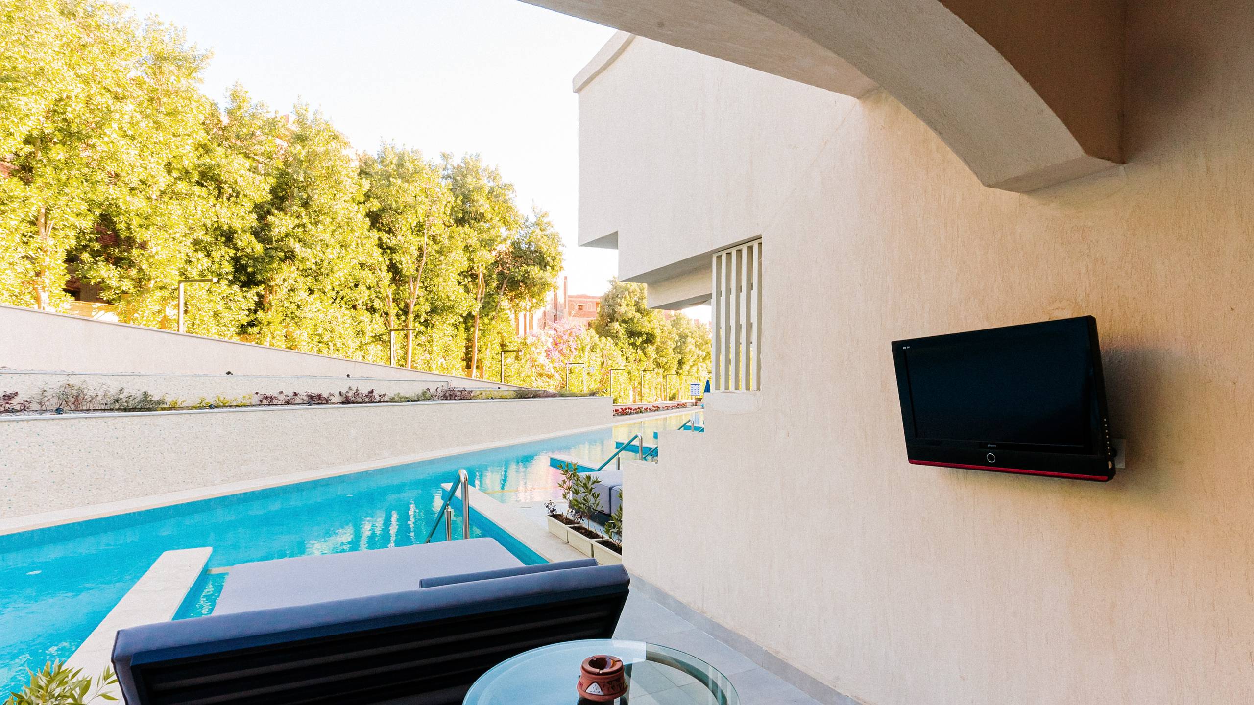 Die modern eingerichteten Zimmer verfügen über Bad oder Dusche/WC, Föhn, Klimaanlage, Telefon, Sat.-TV, Minibar (gegen Gebühr), Kaffee-/Teezubereitungsmöglichkeit und einen Safe sowie Balkon oder Terrasse. Superiorzimmer sind ca. 36-40 qm groß und Deluxezimmer ca. 41-45 qm.