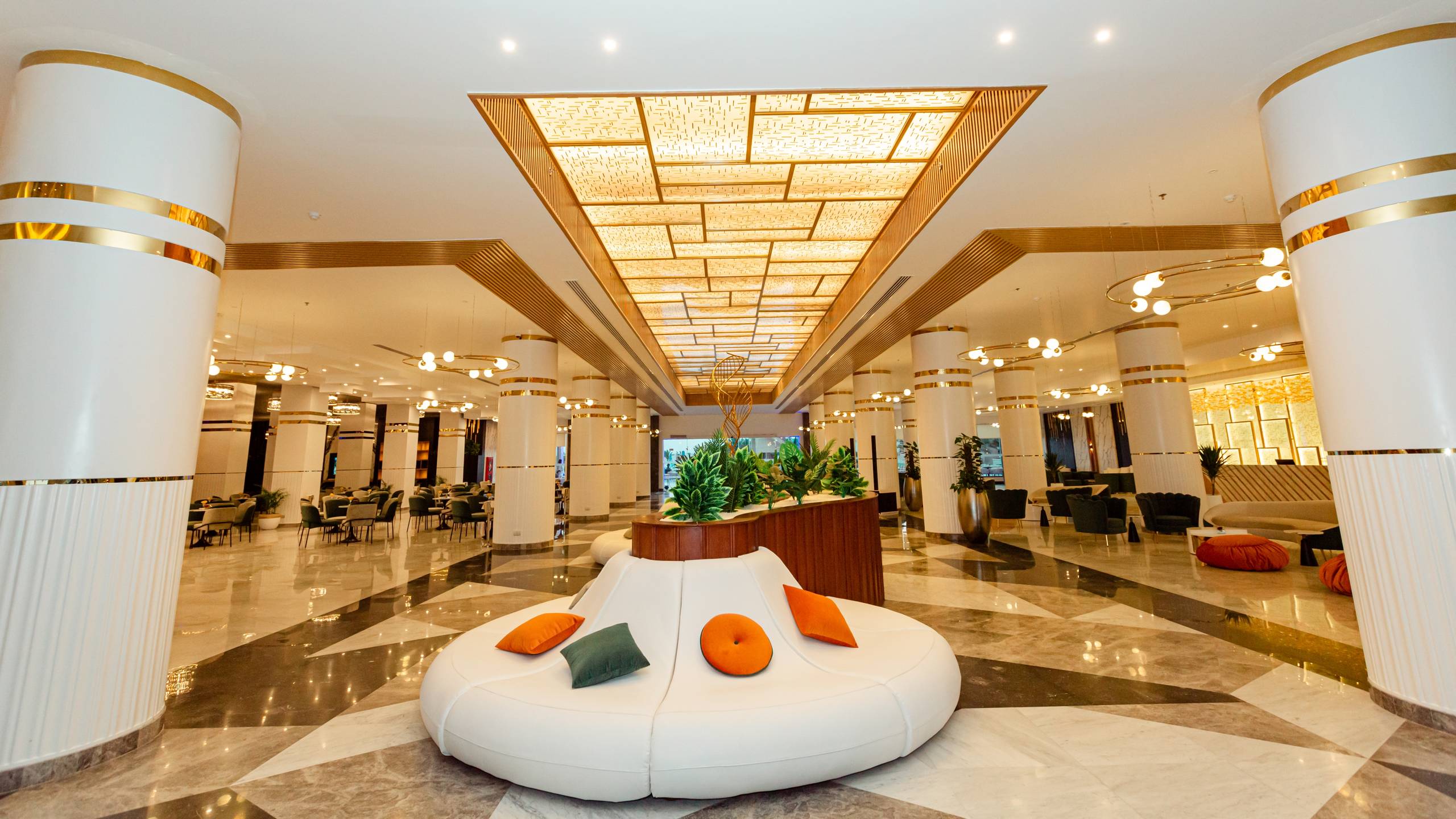 Das Hotel verfügt über insgesamt 347 Zimmer. Zu den Einrichtungen zählen eine Empfangshalle mit Rezeption, Lobbybar, WLAN (kostenfrei in der Lobby), ein Hauptrestaurants, 2x a la carte Restaurants, verschiedene Bars und Parkmöglichkeiten. In der Außenanlage befinden sich 2 Swimmingpools mit 2 Wasserrutschen, Sonnenterrassen und eine Poolbar. Liegen, Schirme und Badetücher stehen Ihnen am Pool und Strand kostenfrei zur Verfügung. Es gibt eine hoteleigene Strandbar.
