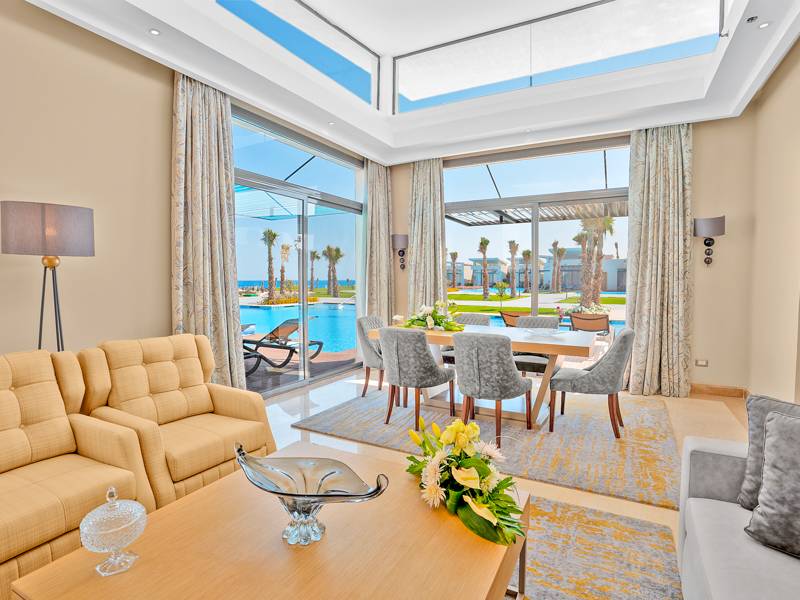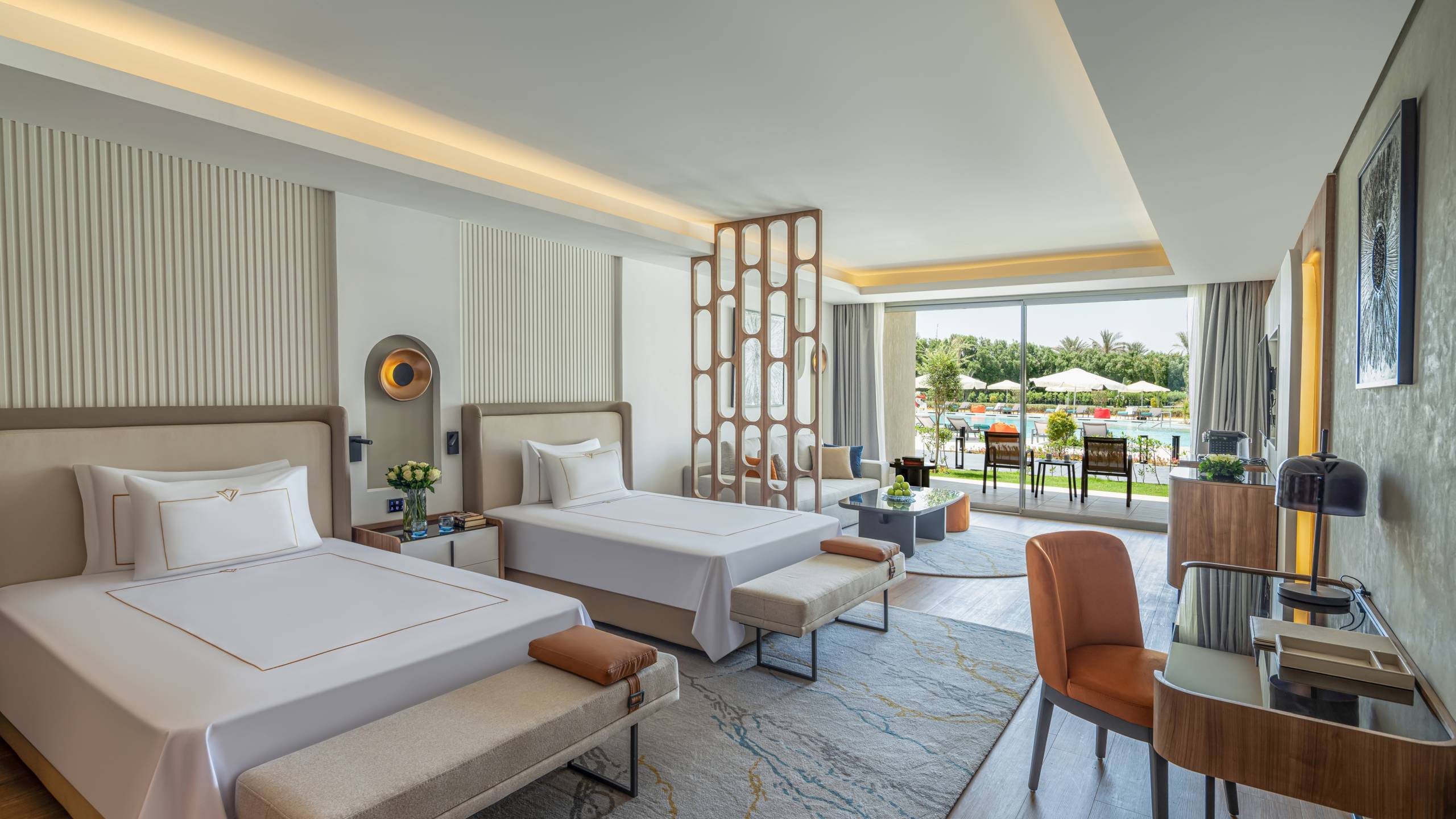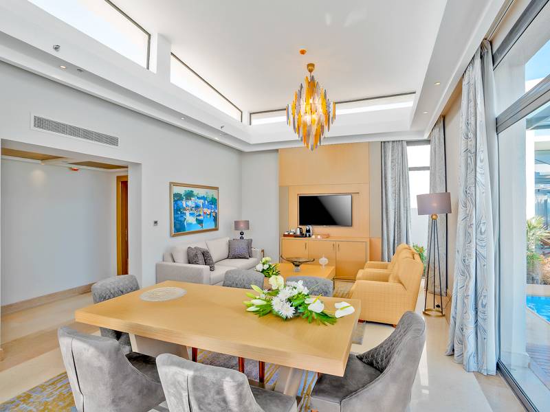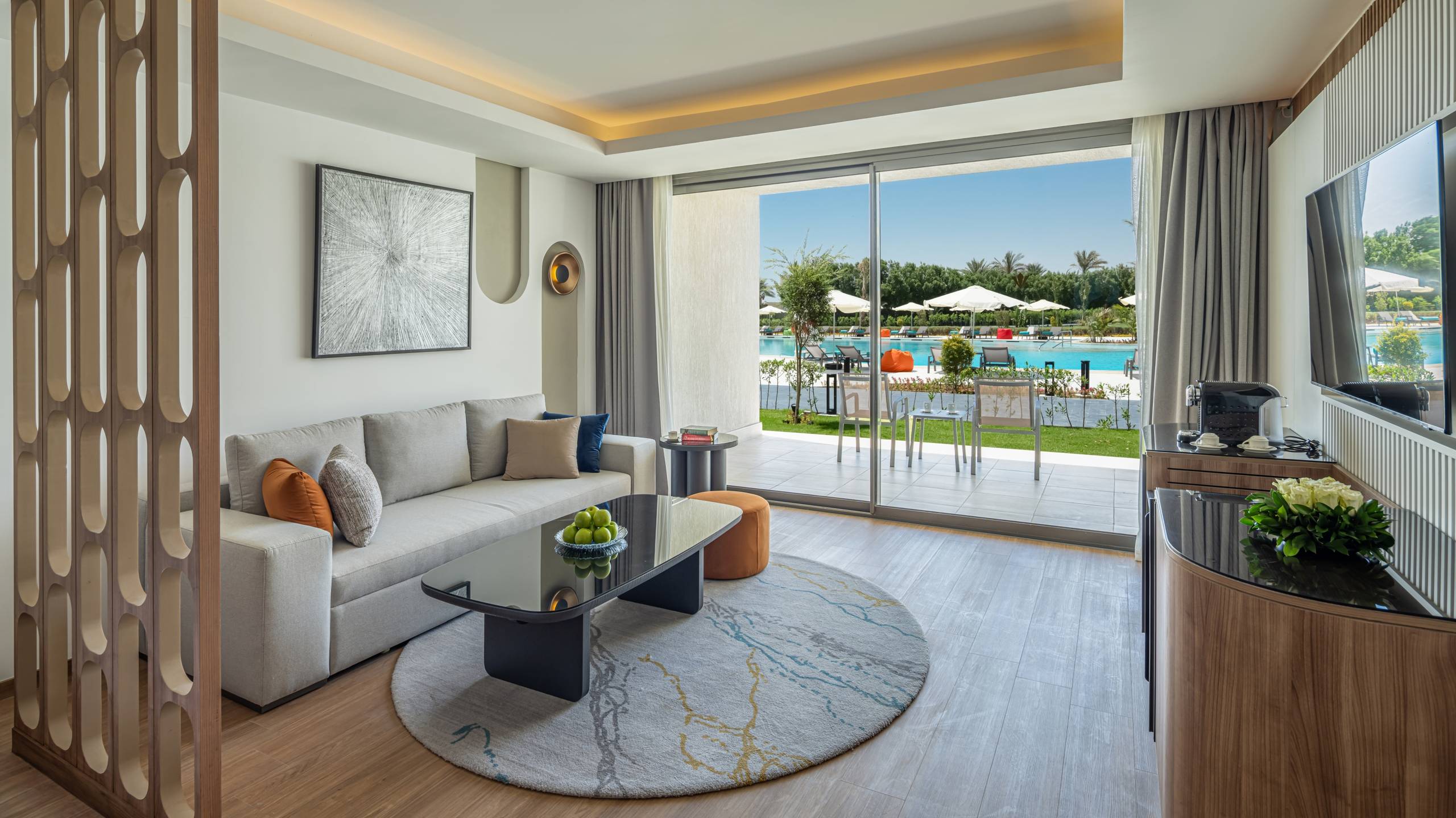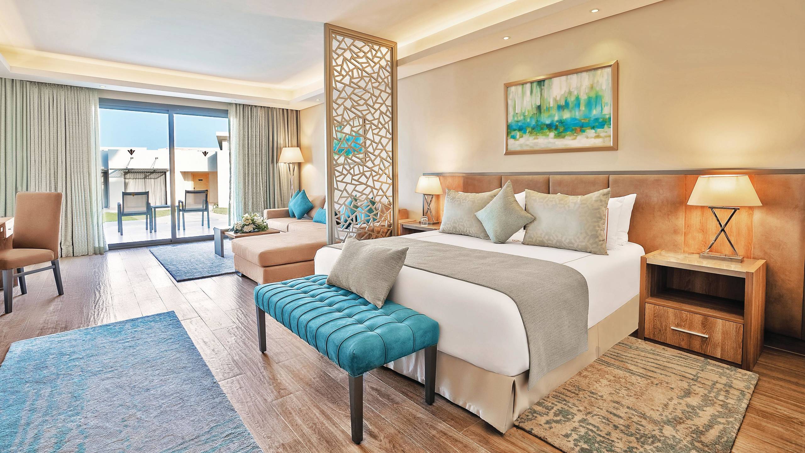 Die Suiten mit Gartenblick (SUG/S3G/S1G)sind mit einer Dusche oder Badewanne/WC, Föhn, Kühlschrank, WLAN/WiFi, Klimaanlage (zentral gesteuert), Telefon, Sat. TV, Safe (geg. Geb.) und Balkon oder Terasse. Diese gibt es auch mit Meerblick (SUM/SM1/S3M). Das Hotel bietet zudem Deluxe Suiten (DS2/DSA/DS3) und Swim-Up Suiten (SSW/SWE/TUT) an. Die Pool Villas für bis zu vier Erwachsenen (VD2/VD3/VD4) sind die der Villenlandschaft gelegen und haben einen direkten Einstieg in den Swim-Up Pool.