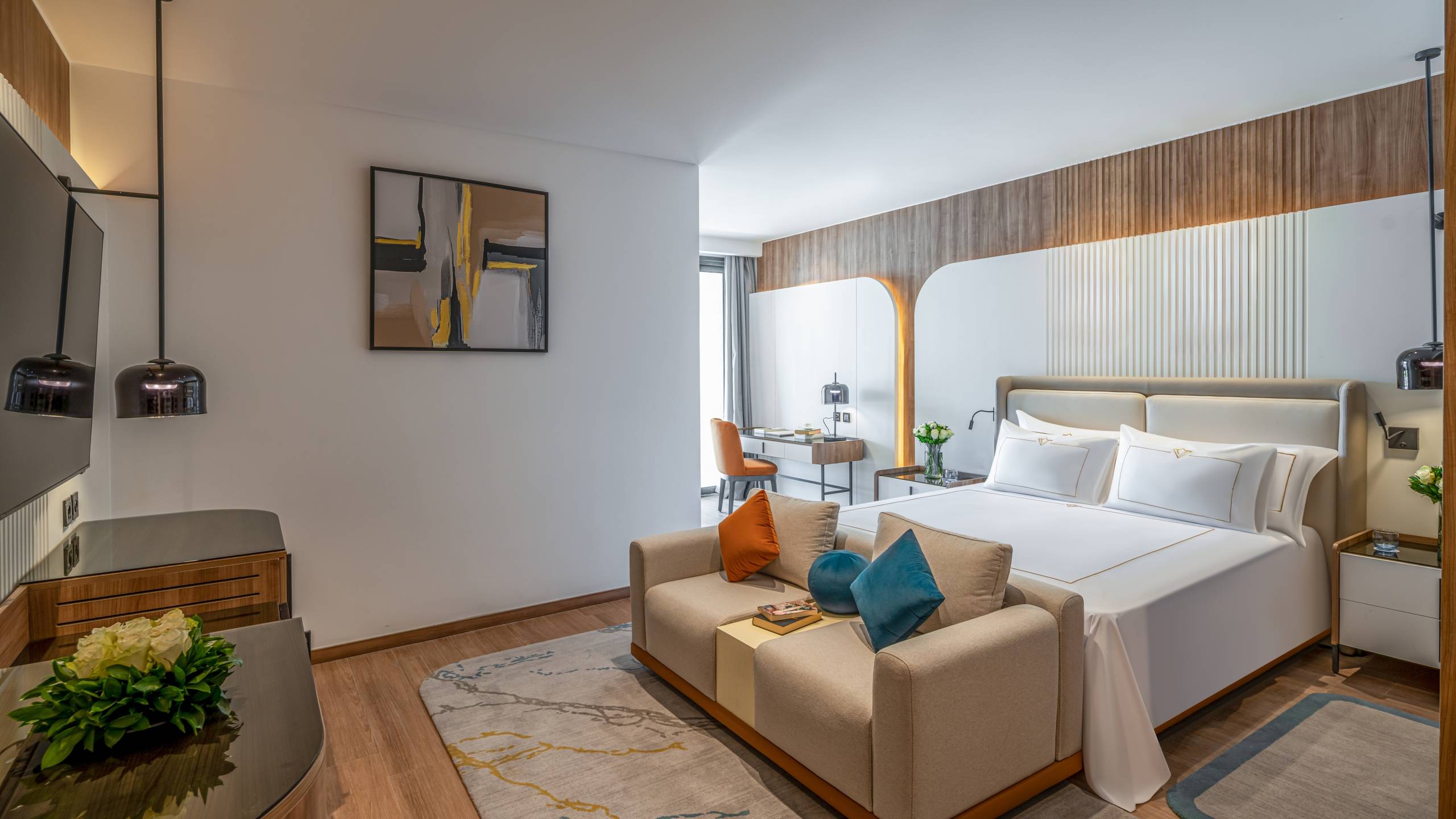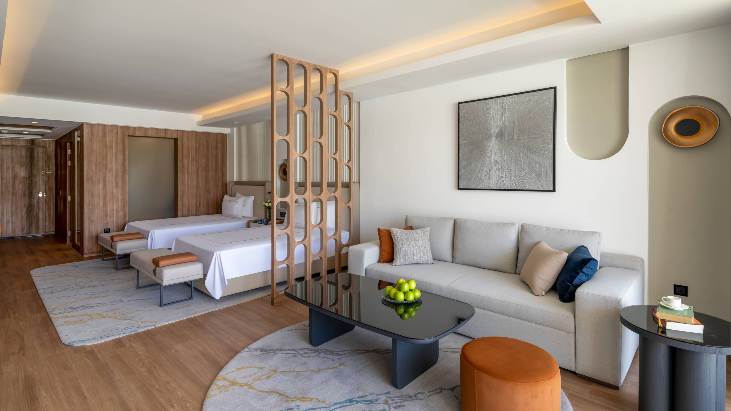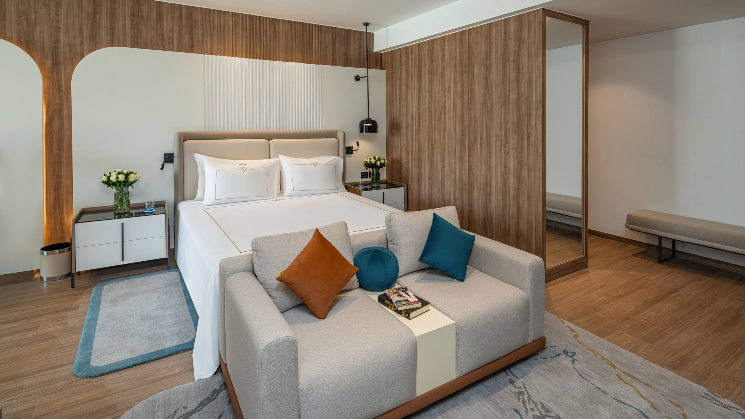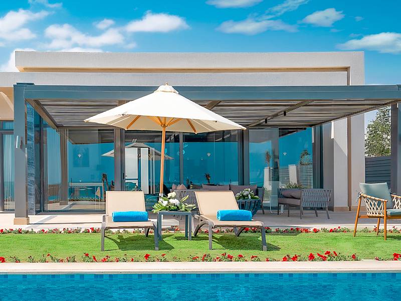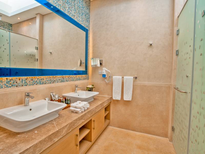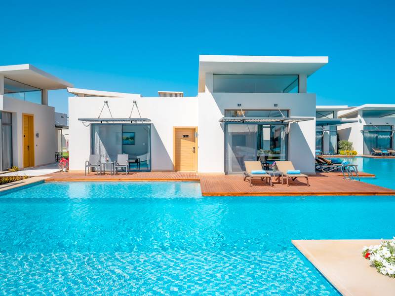Die Suiten mit Gartenblick (SUG/S3G/S1G)sind mit einer Dusche oder Badewanne/WC, Föhn, Kühlschrank, WLAN/WiFi, Klimaanlage (zentral gesteuert), Telefon, Sat. TV, Safe (geg. Geb.) und Balkon oder Terasse. Diese gibt es auch mit Meerblick (SUM/SM1/S3M). Das Hotel bietet zudem Deluxe Suiten (DS2/DSA/DS3) und Swim-Up Suiten (SSW/SWE/TUT) an. Die Pool Villas für bis zu vier Erwachsenen (VD2/VD3/VD4) sind die der Villenlandschaft gelegen und haben einen direkten Einstieg in den Swim-Up Pool.