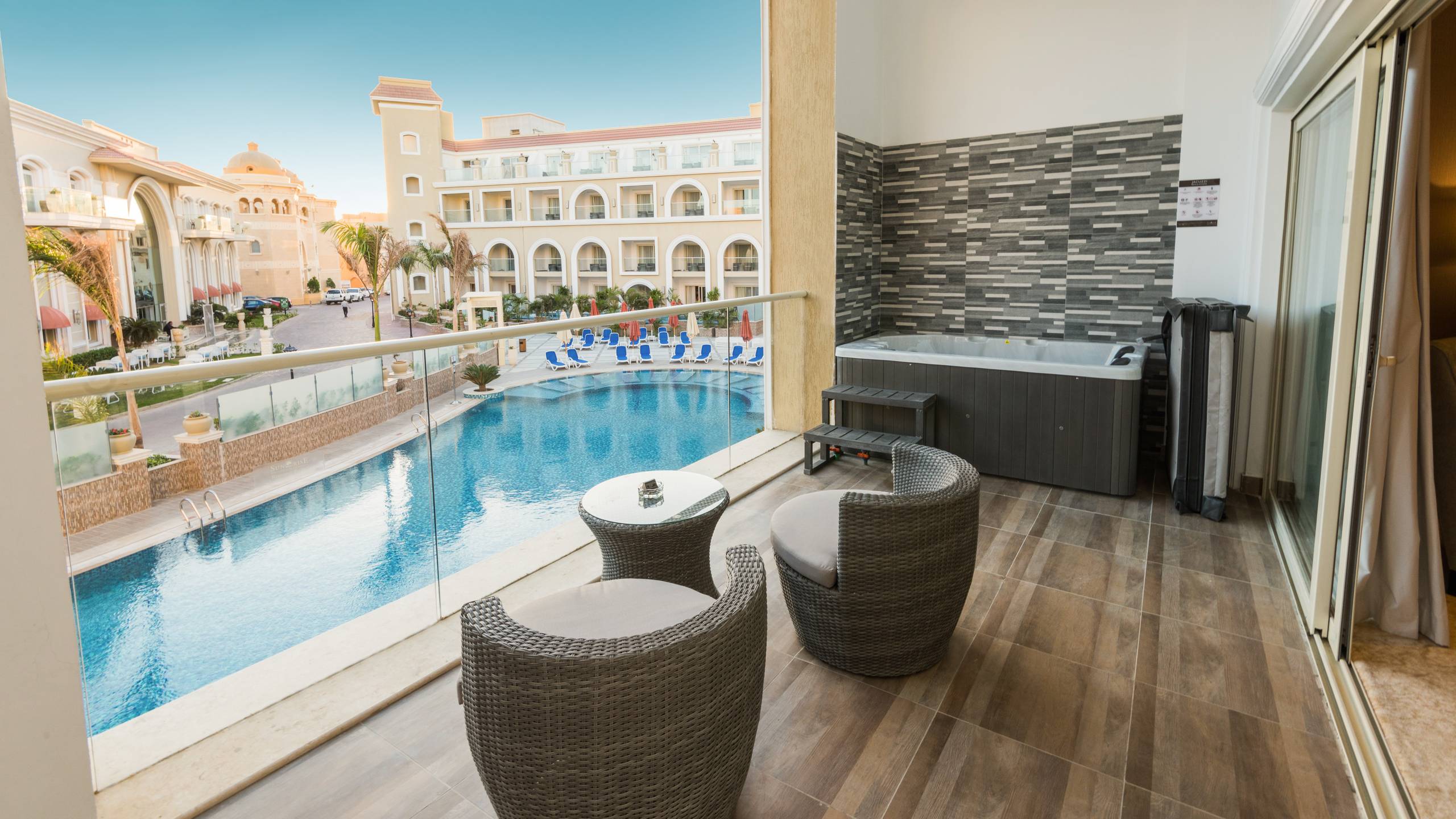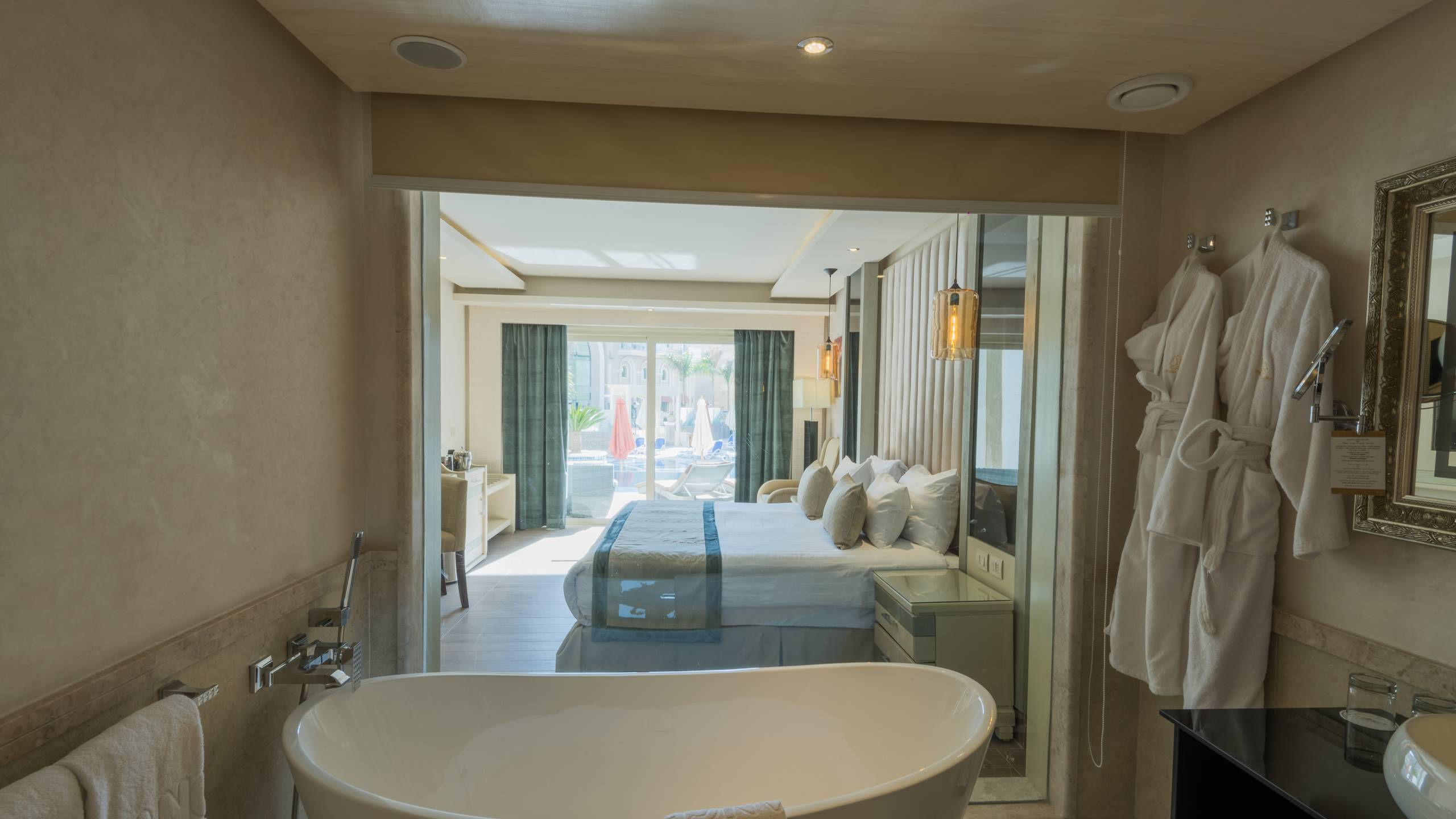 Die Superiorzimmer (36-40 qm) sind ausgestattet mit Kingsize-Bett oder 2 Einzelbetten mit Bad/Dusche, WC, kostenfreies WiFi, Sat-LED-TV, Tee-/Kaffeezubereitung, Minibar und Balkon oder Terrasse. Deluxezimmer (36-40 qm) haben bei gleicher Ausstattung Balkon und Swim-Up Zimmer Terrasse mit direkten Poolzugang. Die Jacuzzi Suiten (81-90 qm) haben einen privaten Jacuzzi.