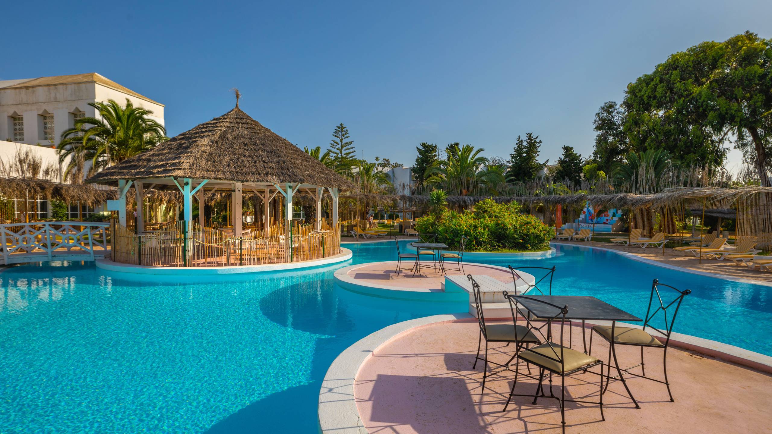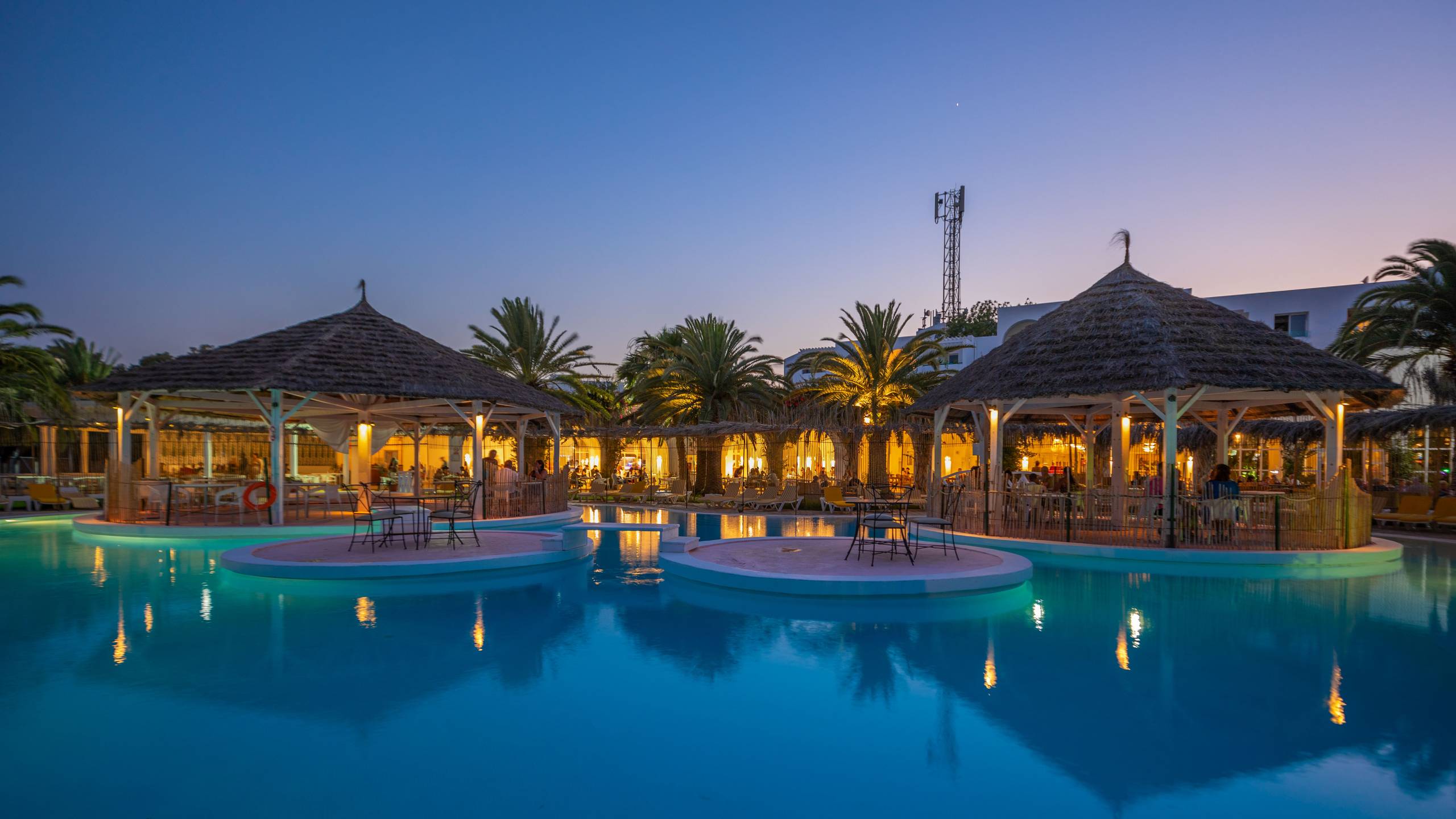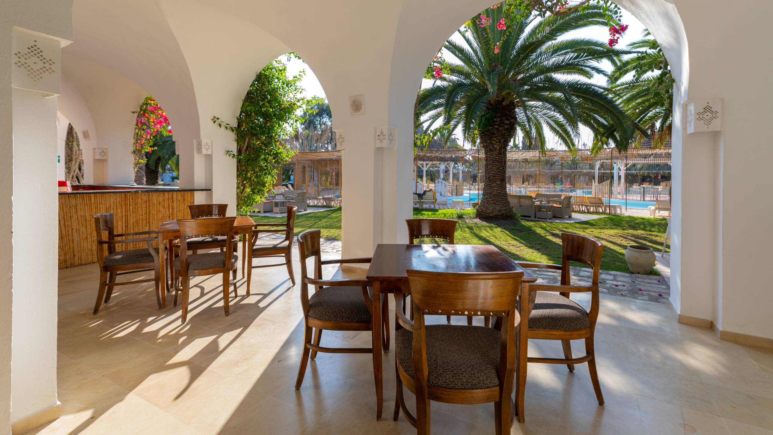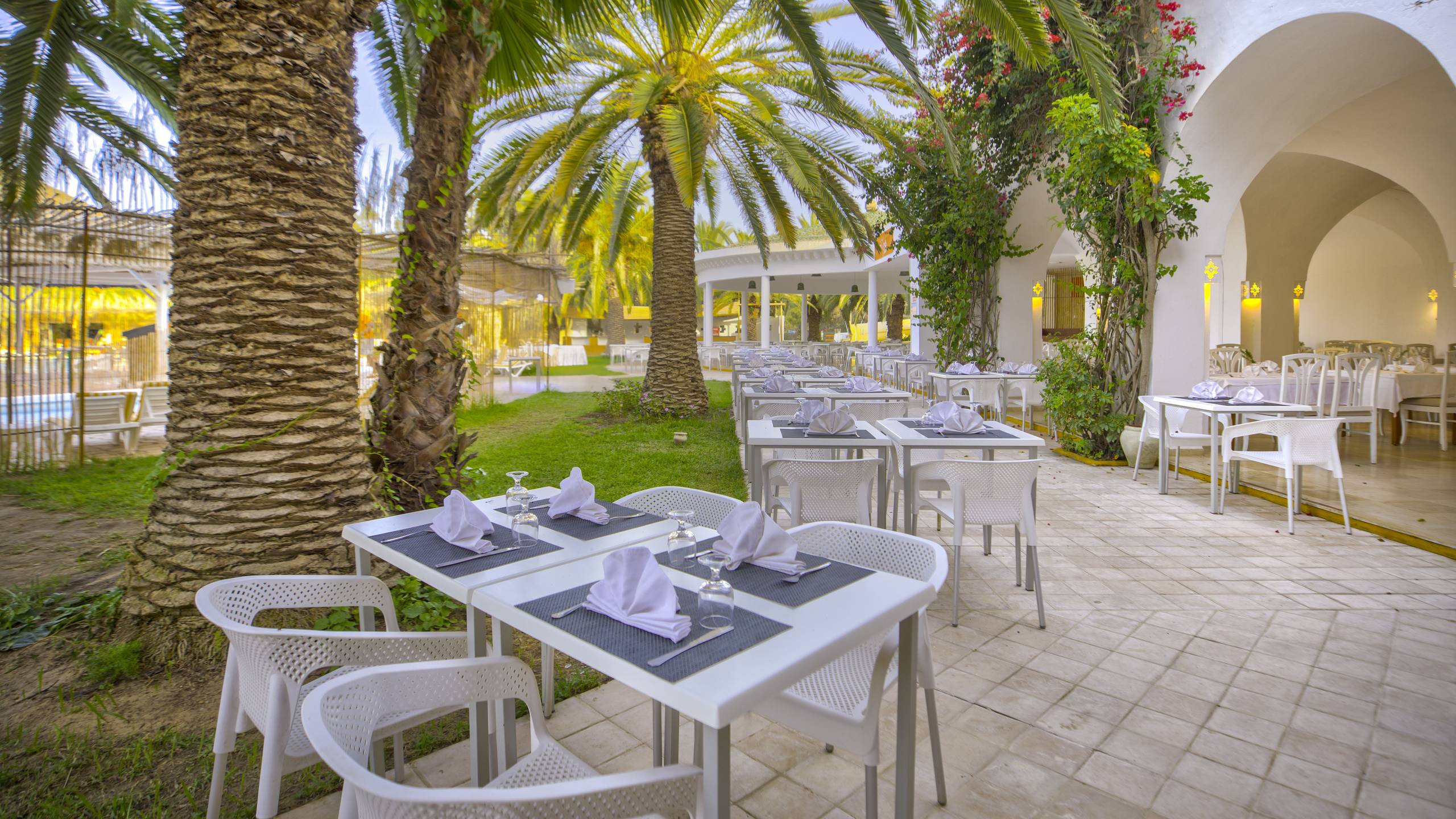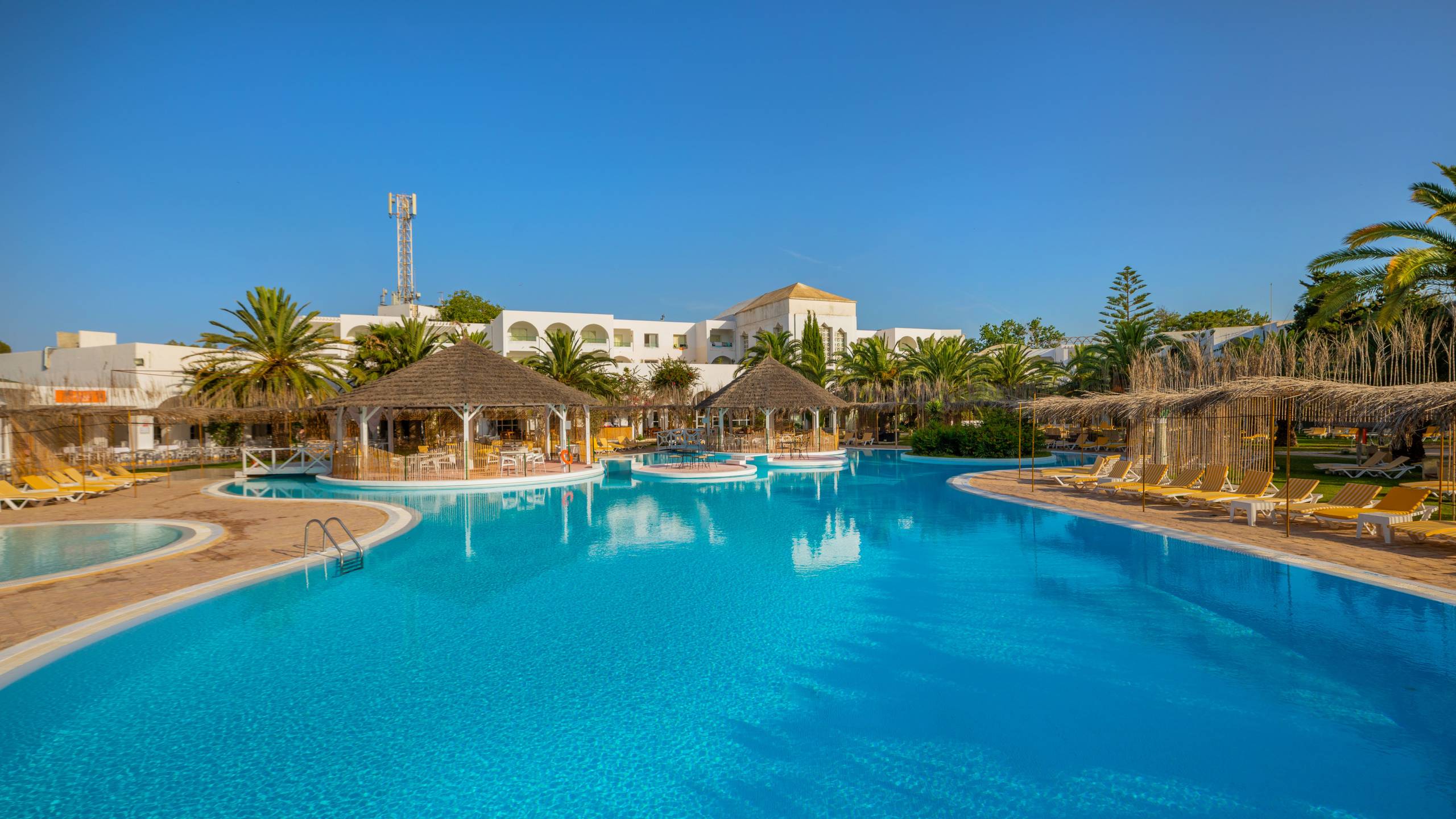 Das Hotel liegt 200m vom Sandstrand und 1km vom Hafen Hammamet-Yasmine entfernt. Zum Flughafen Monastir sind es ca. 80 km und nach Tunis ca. 60km. Golfspieler kommen in den ca. 4km entfernten Plätzen „Citrus Golf Course“ & „Yasmine Golf Course“ auf ihre Kosten.
