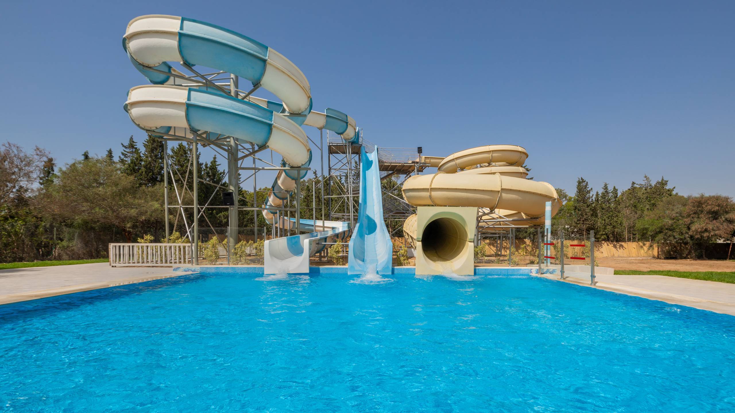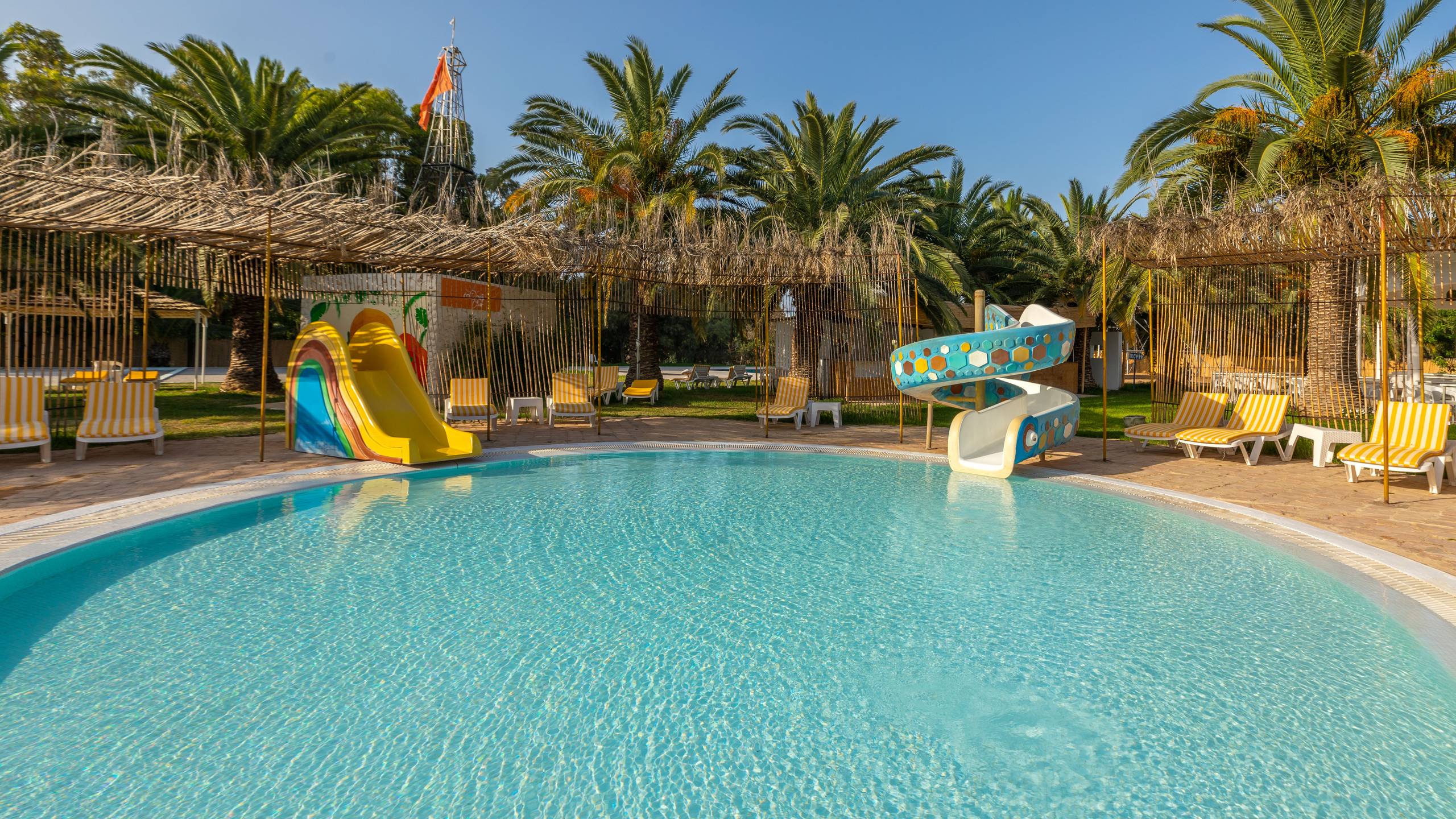 Ein schöner Garten und ein Spielplatz gehören zum Gelände der Unterbringung. Am Strand und am Pool gibt es kostenfrei Sonnenschirme und Liegen; Strandtücher sind gegen Gebühr erhältlich. Die 3 Wasserrutschen sind ca. vom 01.06.-30.09. in Betrieb.