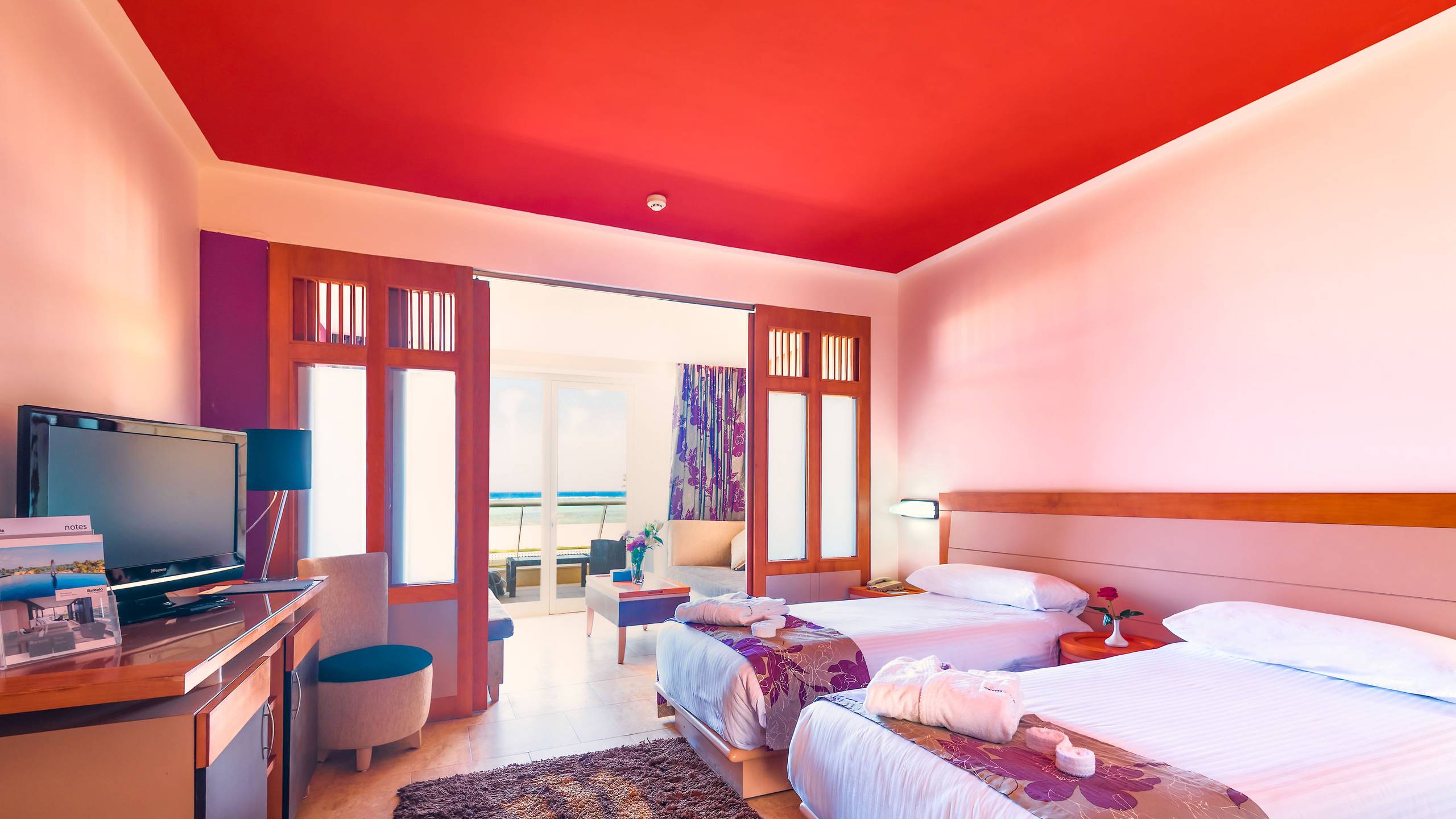 Die Front Superior Zimmer (DSF/ESF)) sowie die Superior Zimmer mit Gartenblick (DSG/ESG), und Meerblick (DSS/ESS) verfügen über Bad oder Dusche/WC, Föhn, Klimaanlage, Telefon, Sat.-TV, Minibar (gegen Gebühr), Mietsafe und einen Balkon. Die Deluxe Zimmer (DXW/EXW) sind gleich ausgestattet wie die Superior-Zimmer und haben zusätzlich einen direkten Poolzugang. Die Familienzimmer (DZF) bieten bei sonst gleicher Ausstattung wie die Superior Zimmer zwei Sofabetten mit einer optischen Trennung.