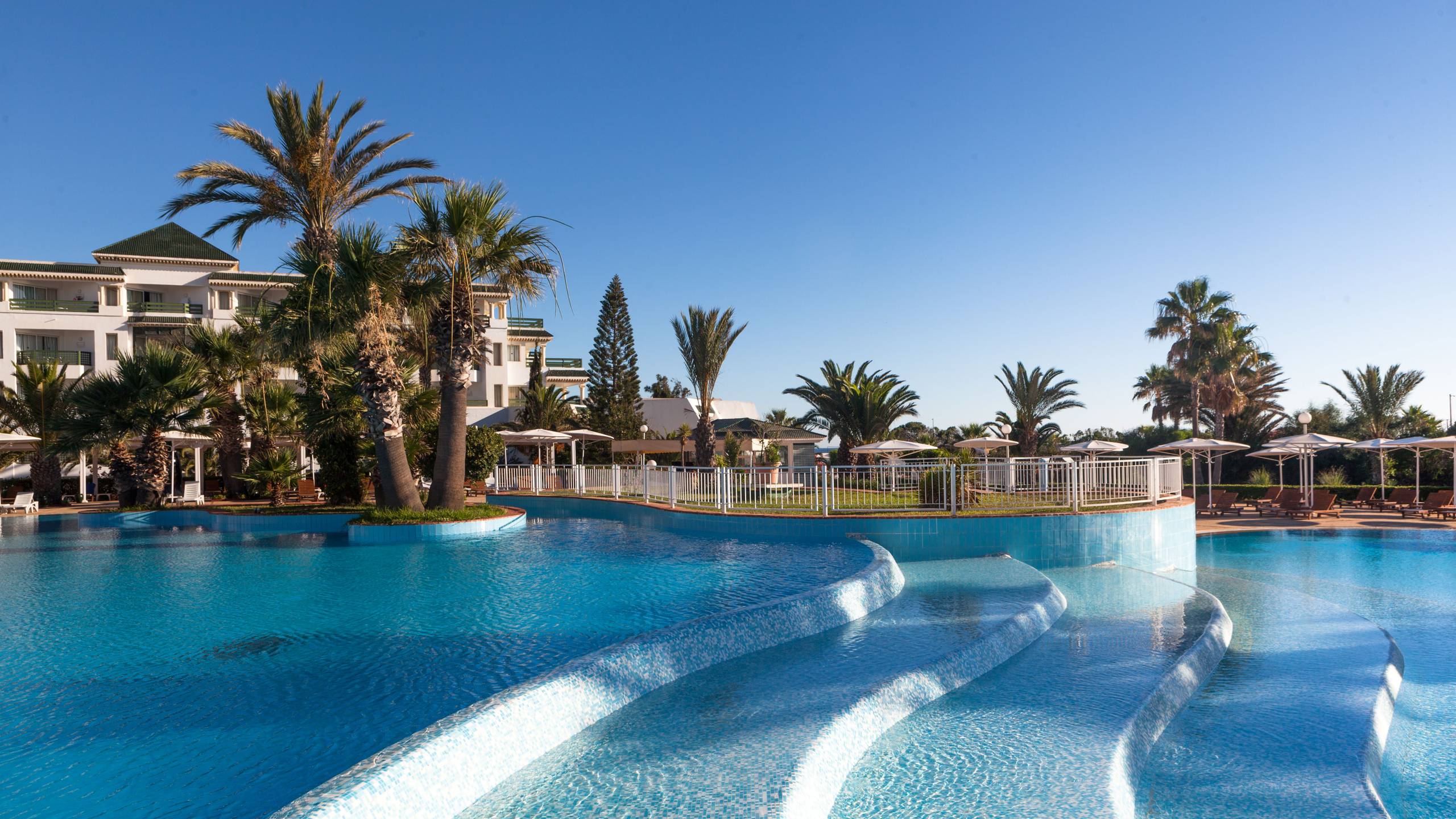 Das elegante Hotel verfügt über 388 Zimmer, welche sich auf 3 Etagen verteilen. Zu den Annehmlichkeiten gehören eine einladende Empfangshalle mit Rezeption, Internetecke (geg. Gebühr), kostenloses WLAN, Restaurants, ein maurisches Café, Bars, Friseur sowie ein Thalassocenter und Hallenbad (ca. 01.11.-14.06.). Die Außenanlage mit mehreren wunderschönen Gärten bietet einen Süßwasserswimmingpool mit Sonnenterrasse. Liegen und Sonnenschirme sind am Pool inklusive, Badetücher gegen Kaution erhältlich.