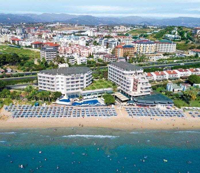 Das Hotel hat eine direkte Strandlage. Ins Ortszentrum von Avsallar mit seinen Einkaufsmöglichkeiten sind es ca. 800 m. Zum Flughafen Antalyas sind es ca. 107 km.