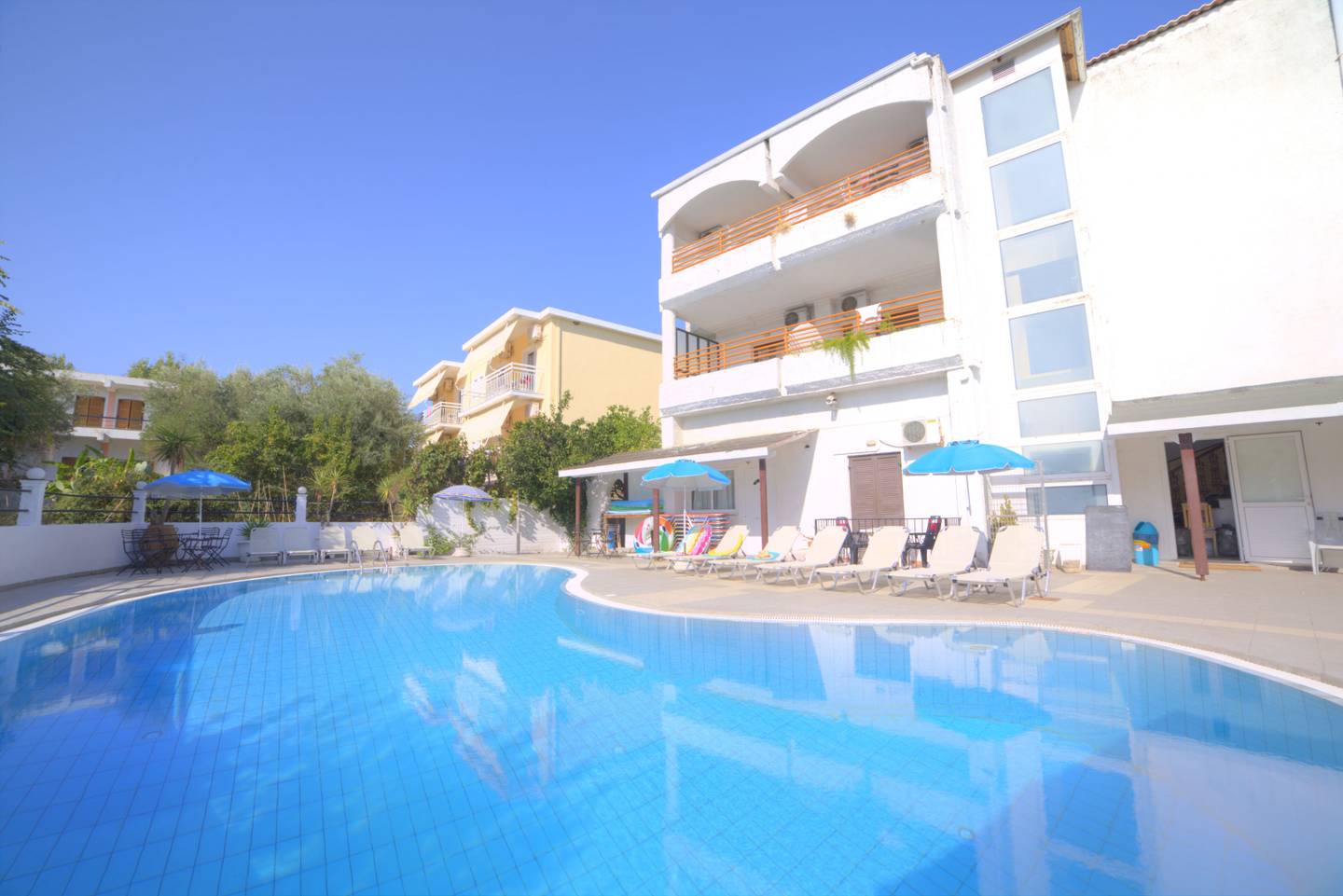 Die Anlage mit ihren insgesamt 25 Wohneinheiten, bietet Ihnen einen Empfangsbereich mit Rezeption und Lobby-Bar, WLAN (kostenfrei) und ein a-la-carte Restaurant. Im Außenbereich befinden sich ein Swimmingpool mit Sonnenterrasse sowie eine Pool-/Snackbar (saisonbedingt). Liegen und Schirme stehen Ihnen am Pool kostenfrei und am Strand gegen Gebühr zur Verfügung.