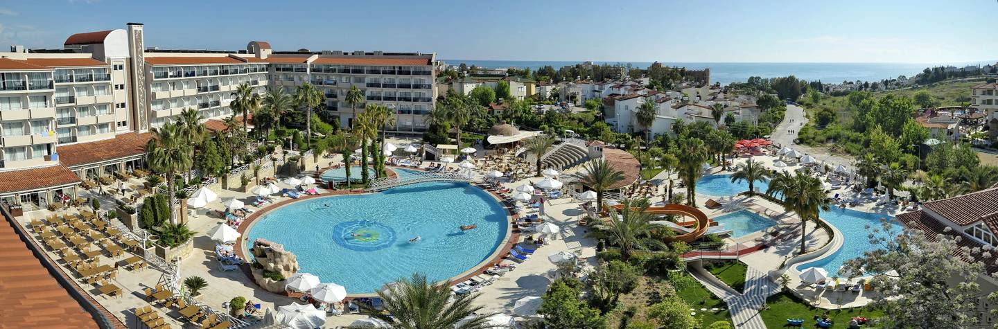 Die stilvoll angelegte Hotelanlage verfügt über 404 Zimmer, verteilt auf 5 Etagen. Zur Einrichtungen gehören die große Empfangshalle mit Rezeption, Lift, Internetcafé (geg. Geb.), WLAN, Friseur, TV-Ecke, Hauptrestaurant, 2 Á-la-carte-Restaurants, 3 Bars, Geschäfte, das Wellnesscenter, eine Diskothek und ein Amphitheater. In der Gartenanlage erwarten Sie 4 Swimmingpools mit großzügigen Sonnenterrassen sowie die Pool-/Snackbar. Liegen, Sonnenschirme und Badetücher sind am Pool und am Strand kostenlos.