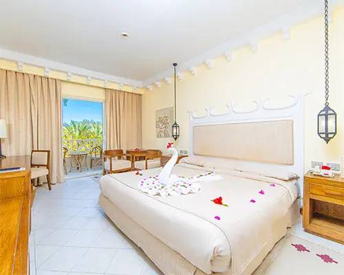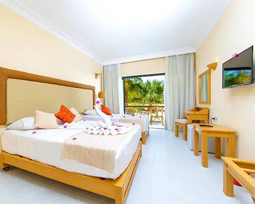 Die Standardzimmer verfügen über Bad, WC, Klimaanlage (saisonal), Telefon, Safe, Sat. TV, Kühlschrank, Föhn mit Gartenblick und teilweise Balkon/Terasse. Die Superiorzimmer sind gleich ausgestattet, aber größer und haben Garten- oder teilweise Meerblick. Die Familienzimmer haben Pool- oder Gartenblick und ein zusätzliches Schlafzimmer. Bei Buchung mit 2 Erwachsenen und 1-2 Kindern oder 3 Personen haben die Zimmer ein Doppelbett und Zustellbetten.